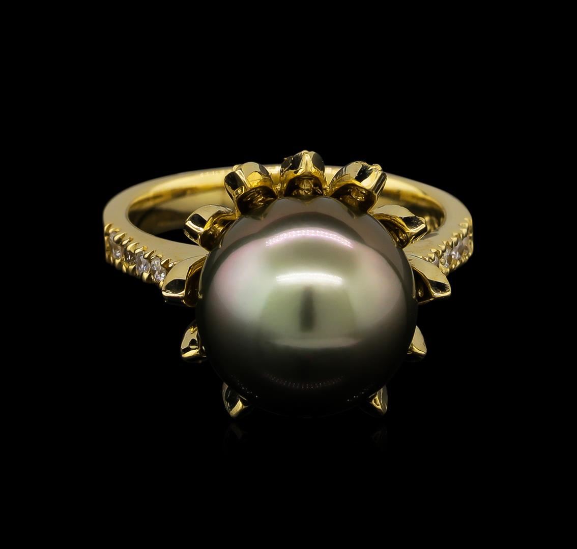 One ring featuring: 14KT yellow gold weighing 5.85 grams containing one pearl and side diamonds with a total weight of 0.58ct.