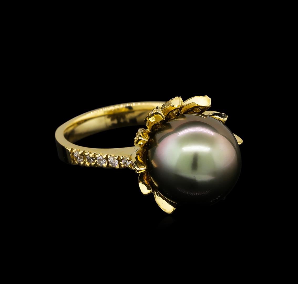 One ring featuring: 14KT yellow gold weighing 5.85 grams containing one pearl and side diamonds with a total weight of 0.58ct.
