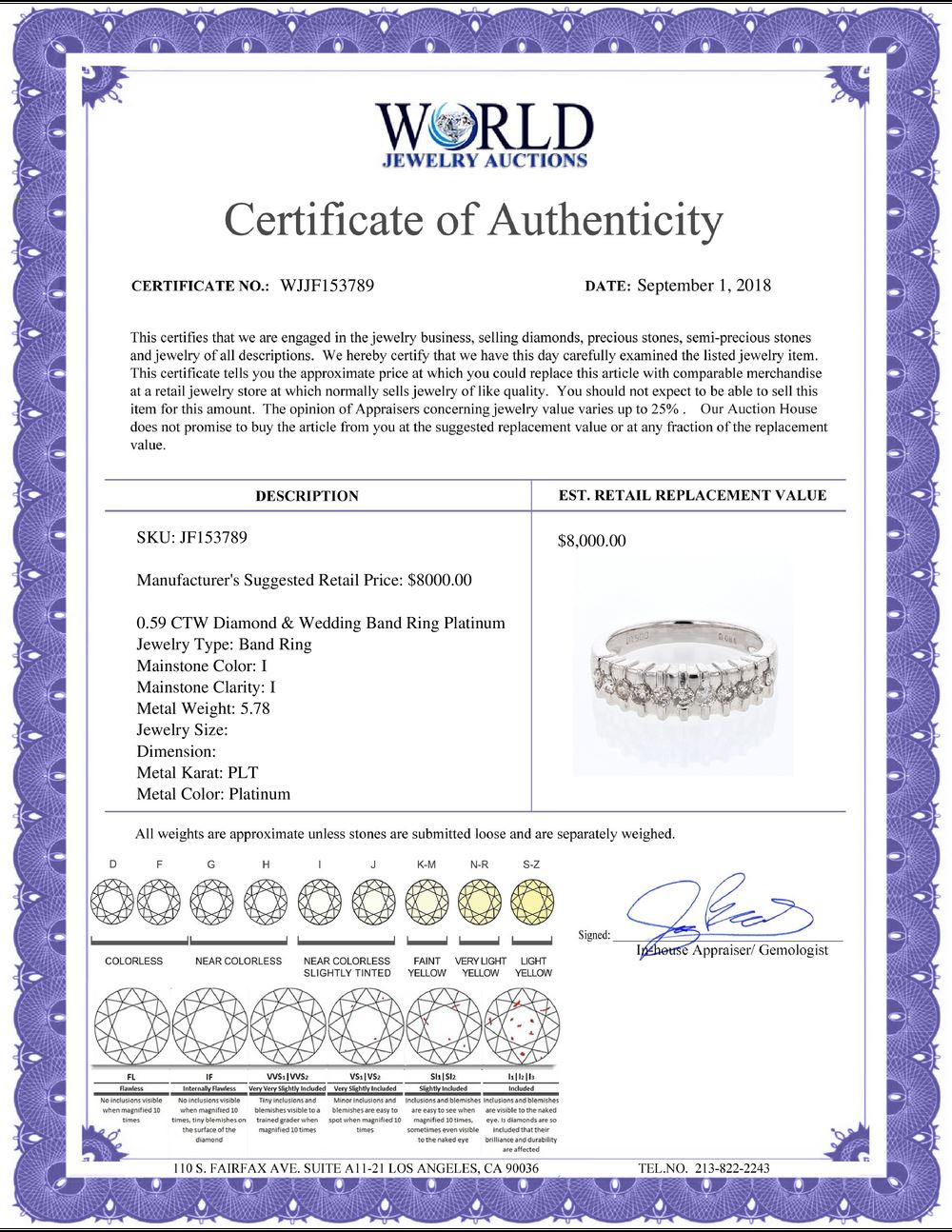 REF-103H4M - JF153789 ---- 0.59 CTW White Round Diamond Band Ring Platinum