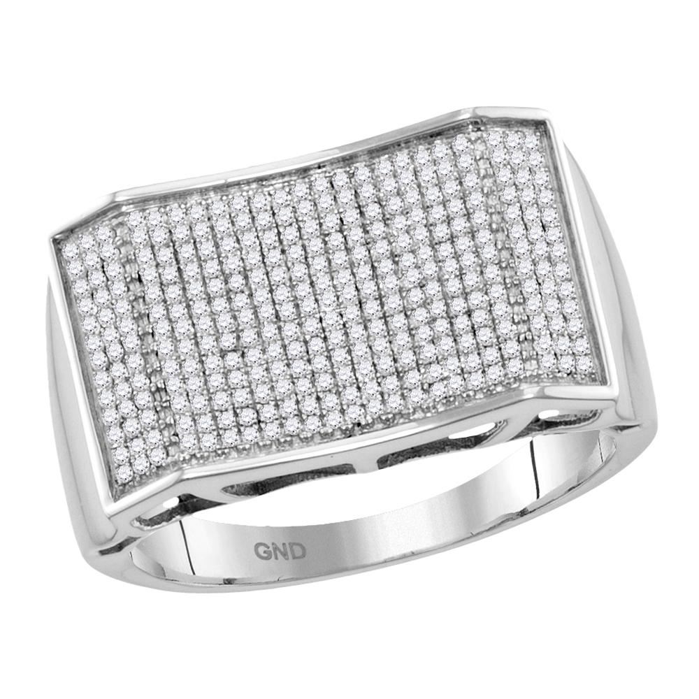 REF-82M4H- SKU: GD66965 ---- 0.59 CTW Mens Pave-set Diamond Rectangle Convex Cluster Ring 10KT White Gold