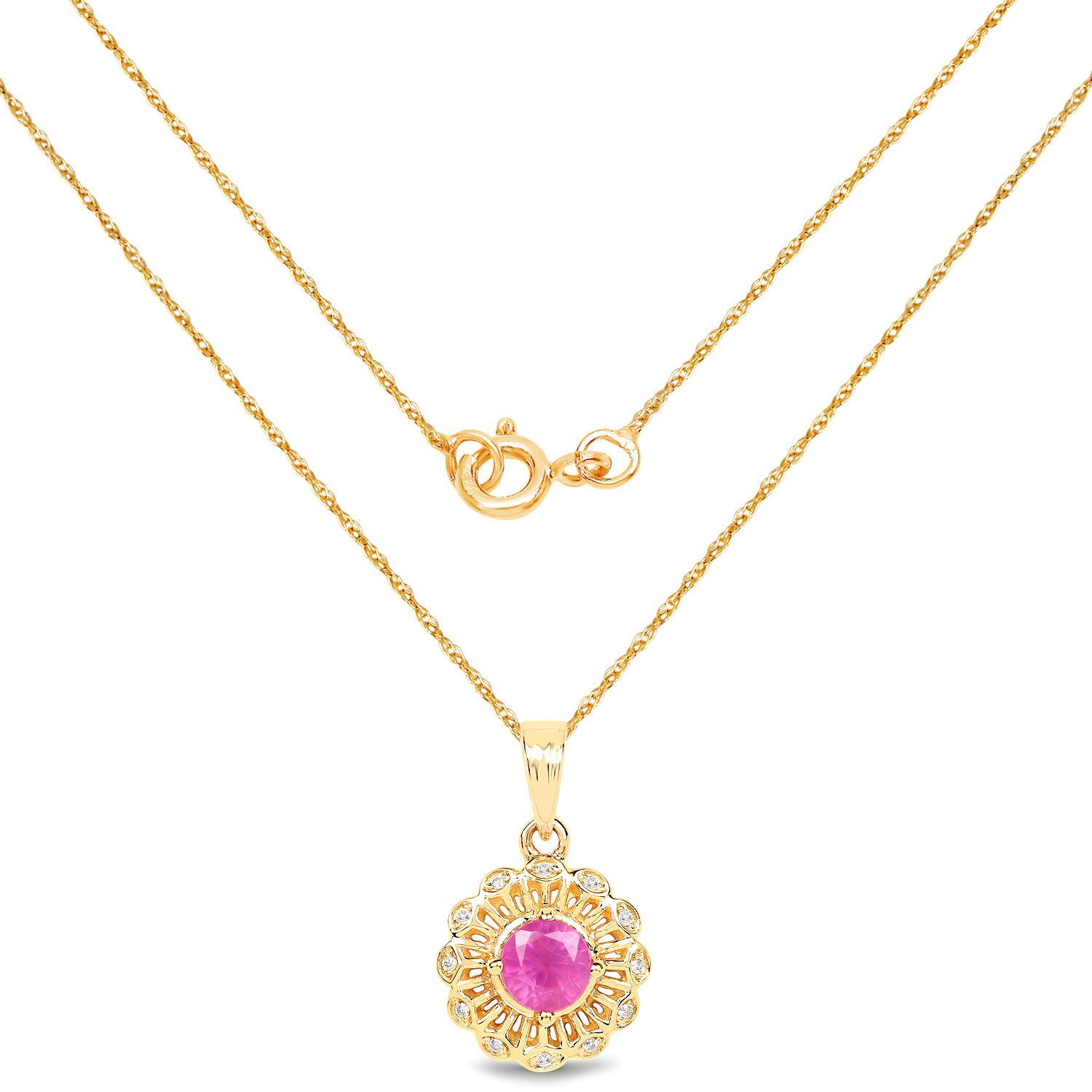REF-33M2F ---- 0.59 ctw Ruby & White Diamond Pendant 14K Yellow Gold