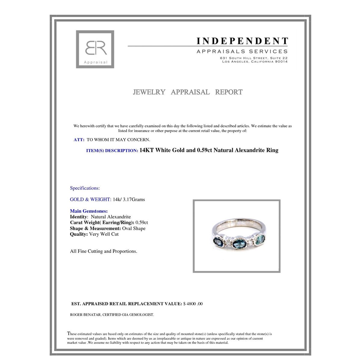 14K WHITE GOLD NATURAL ALEXANDRITE RING:3.17GRAM /ALEXANDRITE :0.59CT/#GVR1235