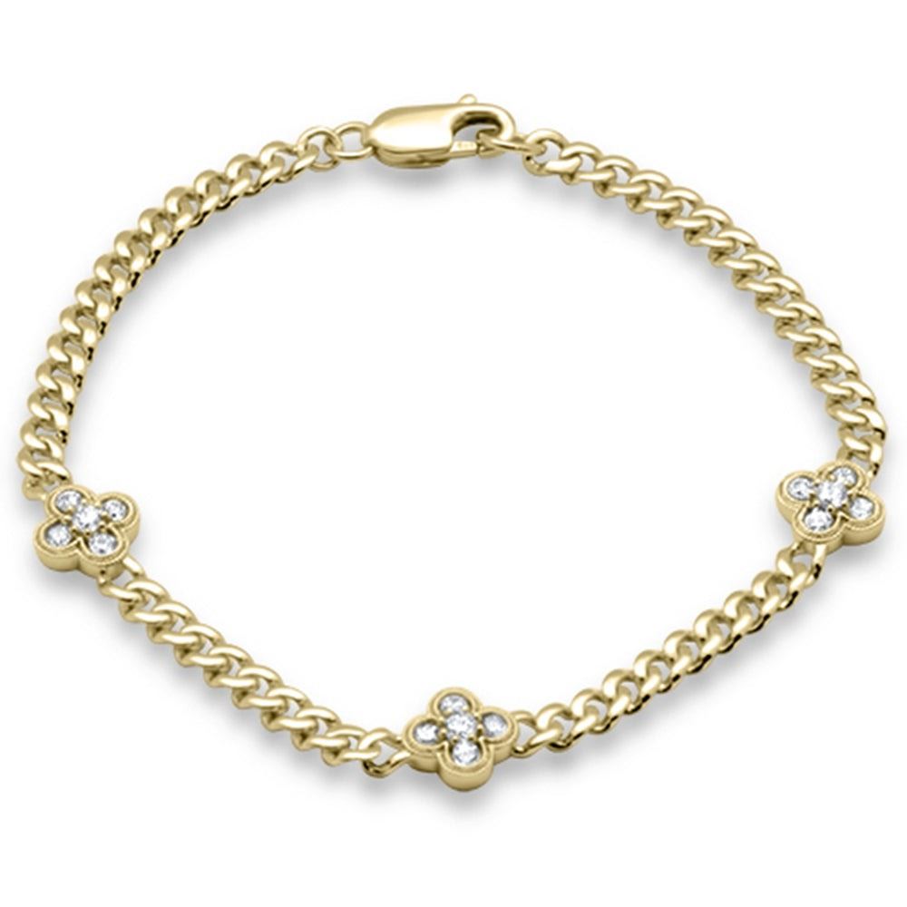 0.59ct 14K Yellow Gold 8.18 Grams Diamond Cuban Chain Flower Bracelet 7" Long