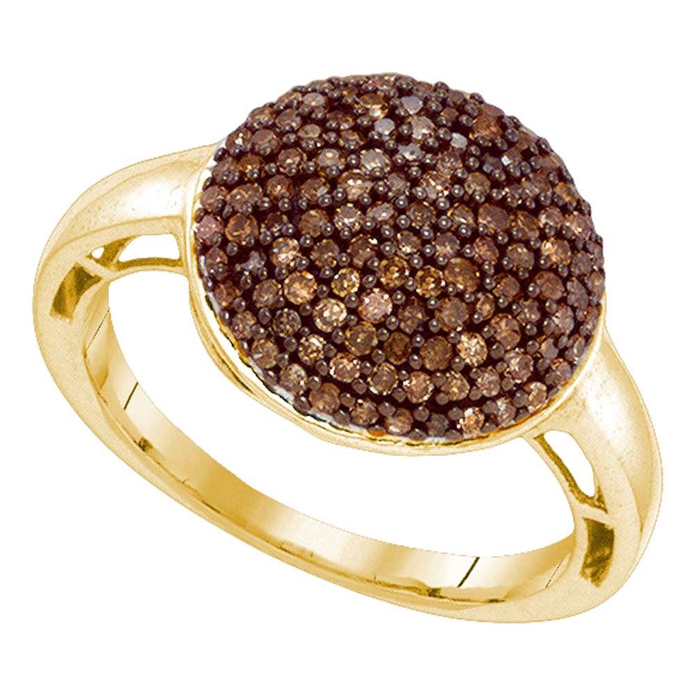 REF-30W2K- SKU: GD87440 ---- 0.60 CTWCognac-brown Color Diamond Cluster Ring 10KT Yellow Gold