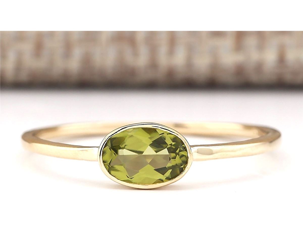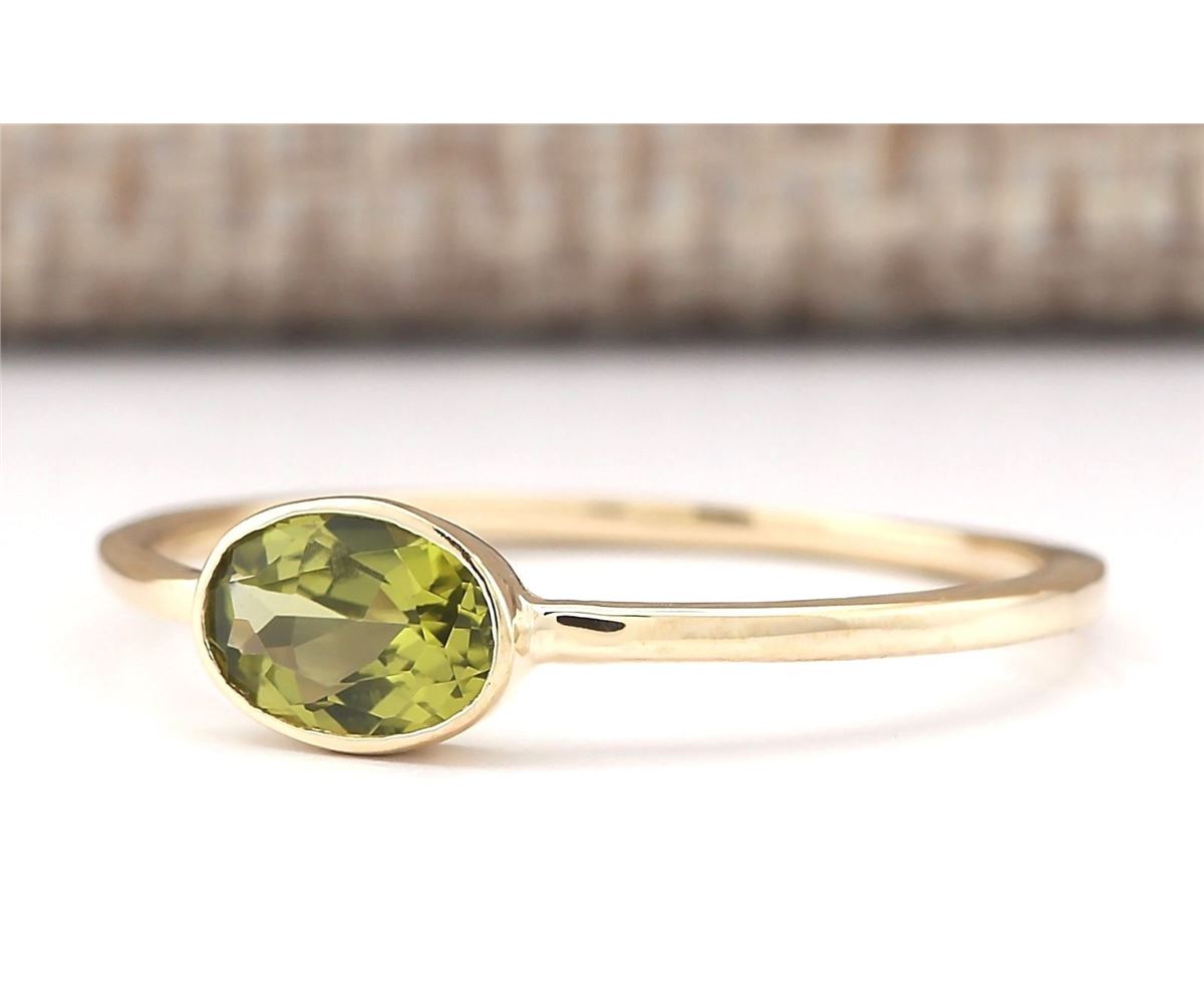 Stamped: 14K Ring Size: 6.5 Total Ring Weight: 1 Grams Gemstone Weight: Total Natural Peridot Weight is .60ctw Main Stone Color: Green Face Measures: 4.85x6.92mm SKU: [703210]
