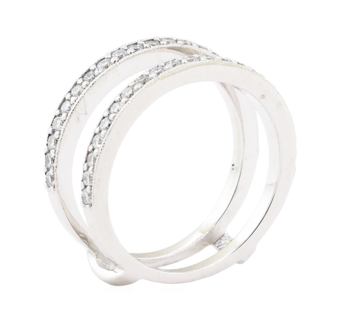 One double row ring guard featuring: 14KT white gold weighing 5.3 grams containing diamonds weighing 0.60ctw.