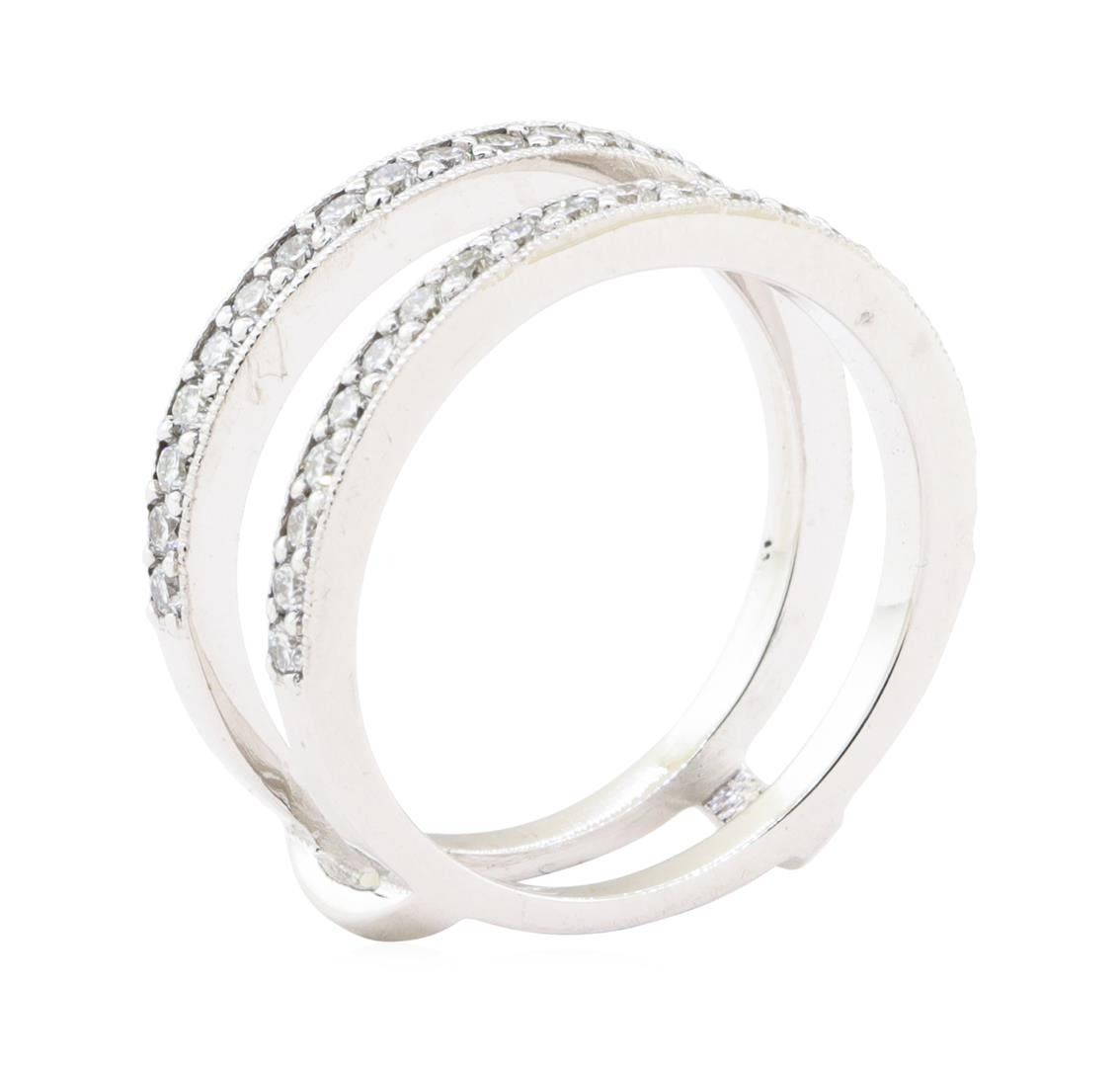 One double row ring guard featuring: 14KT white gold weighing 5.3 grams containing diamonds weighing 0.60 ctw.