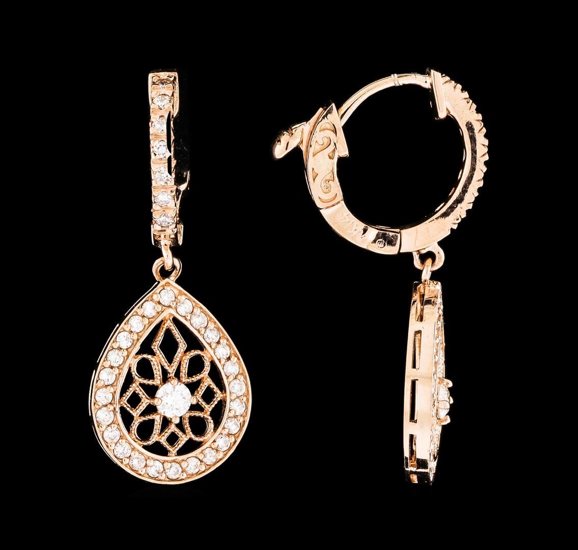 One pair of Diamond Earrings featuring: 14KT Rose Gold with a total weight of 4.67 grams and 64 Diamonds with a total weight of 0.60ctw.