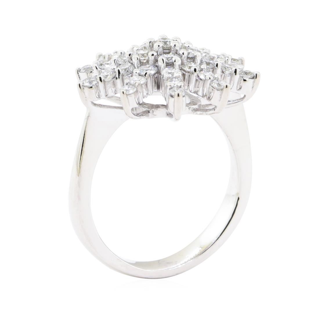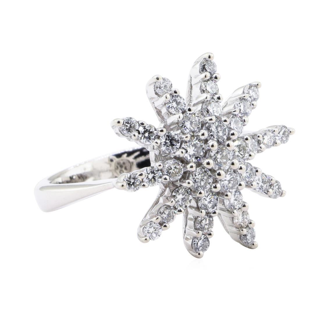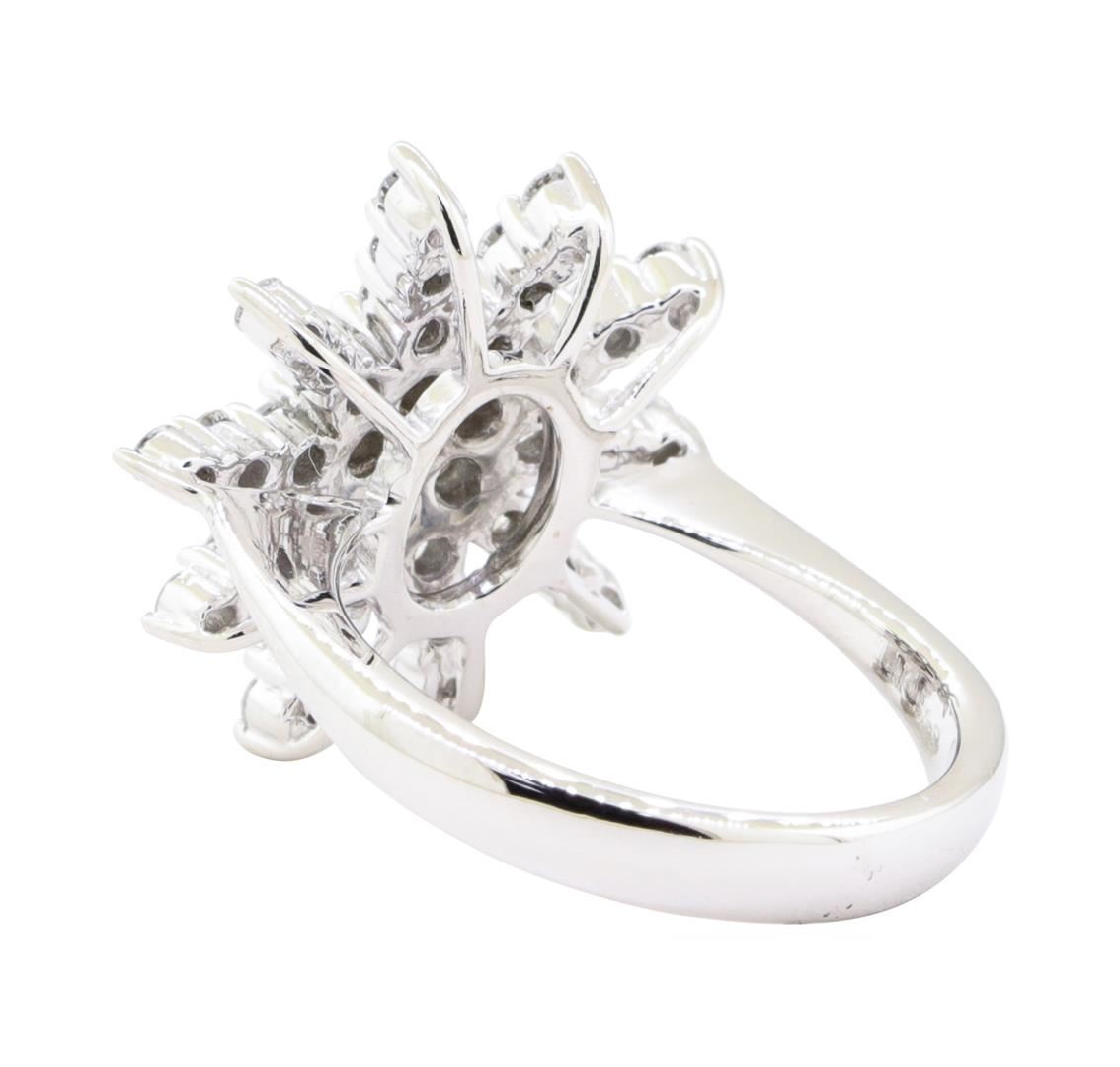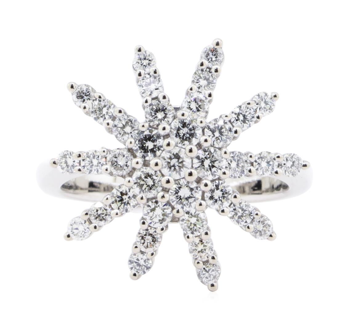 One ring with a starburst motif featuring: 14KT white gold weighing 5.4 grams containing diamonds weighing 0.60ctw.