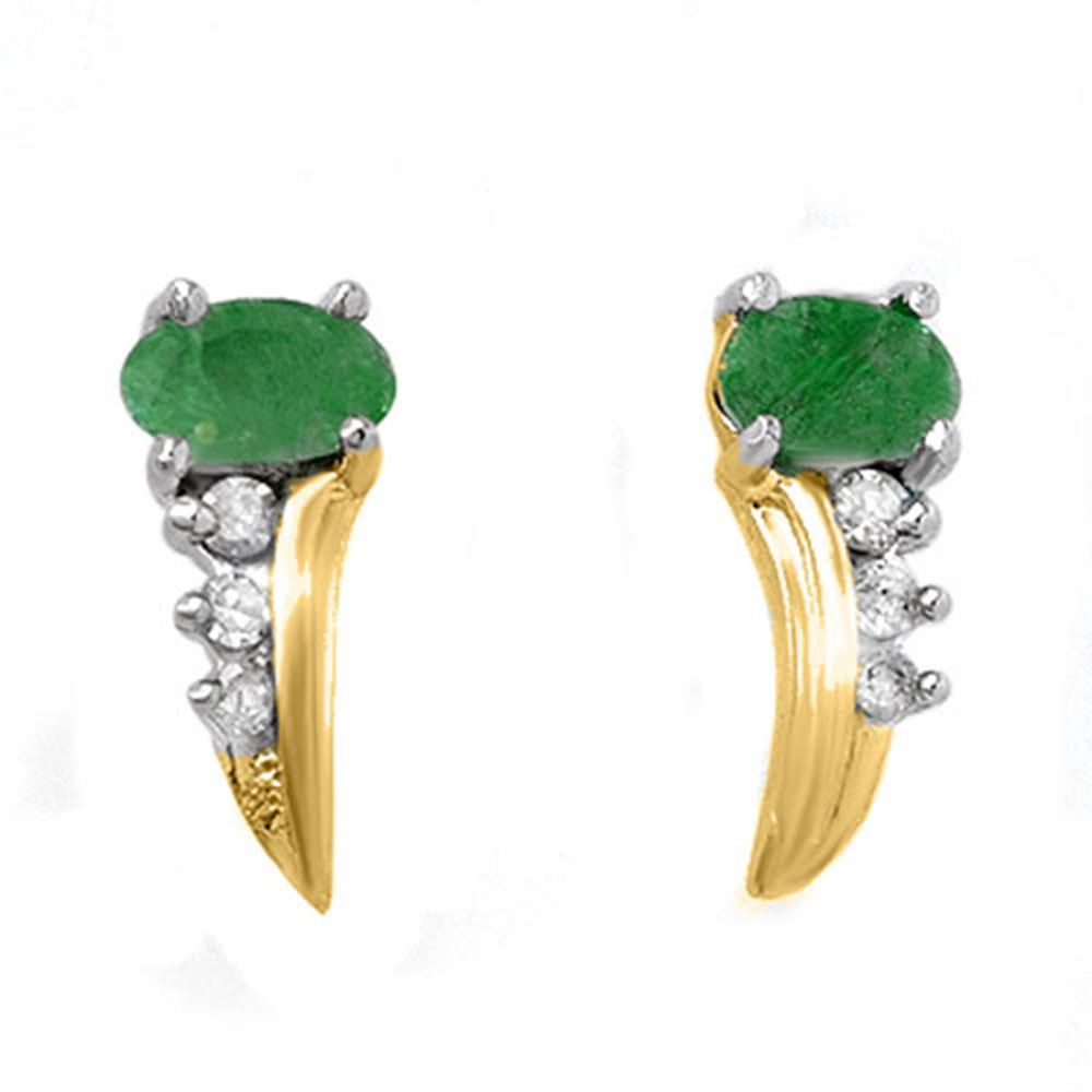 REF-12R3K - SKU: 13743 ---- 0.60 ctw Emerald & Diamond Earrings 10k Yellow Gold