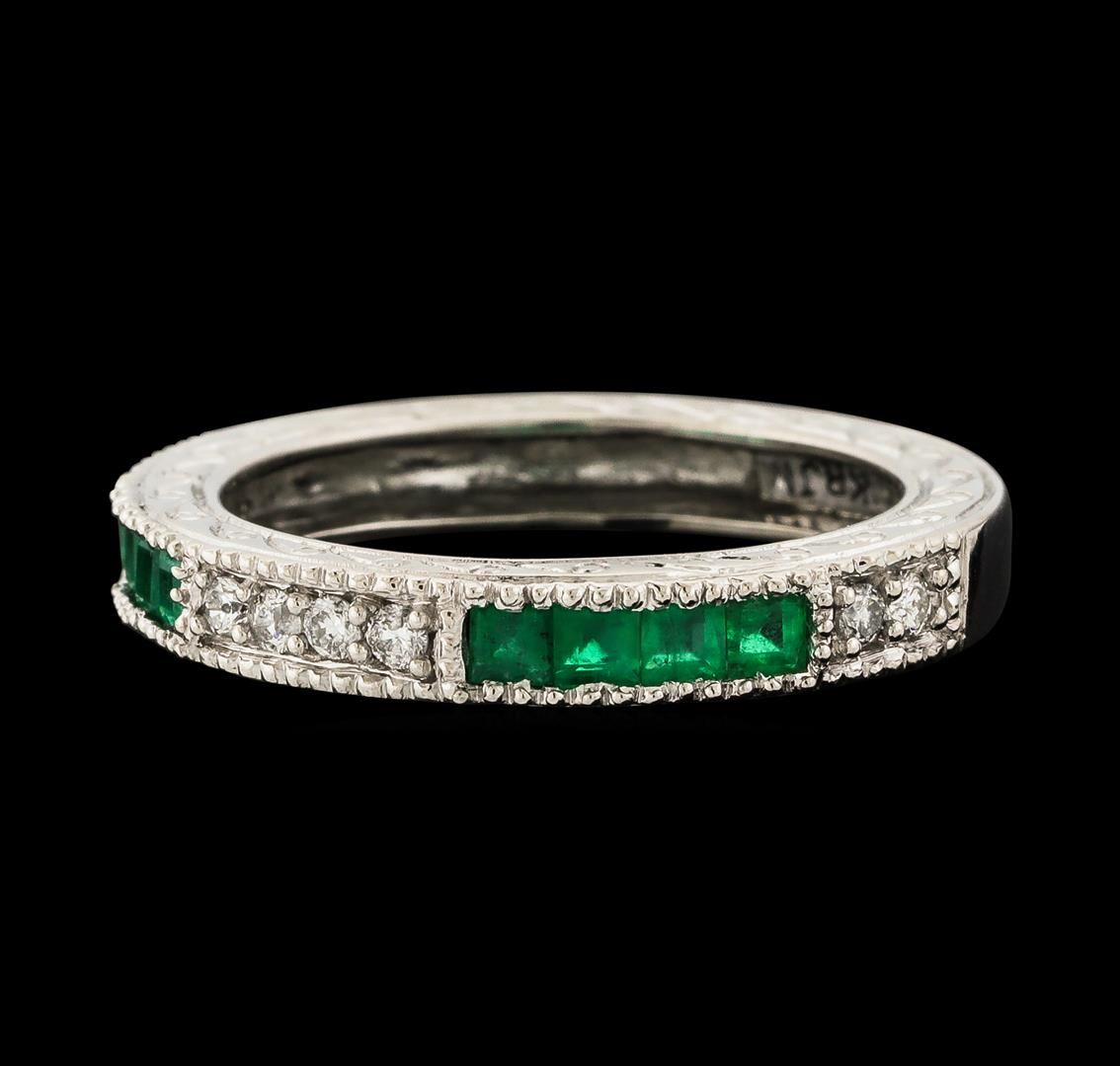 One ring : 14KT white gold weighing 4.10gm containing emeralds with a total weight of 0.60ct and side diamonds weighing 0.20ctw.