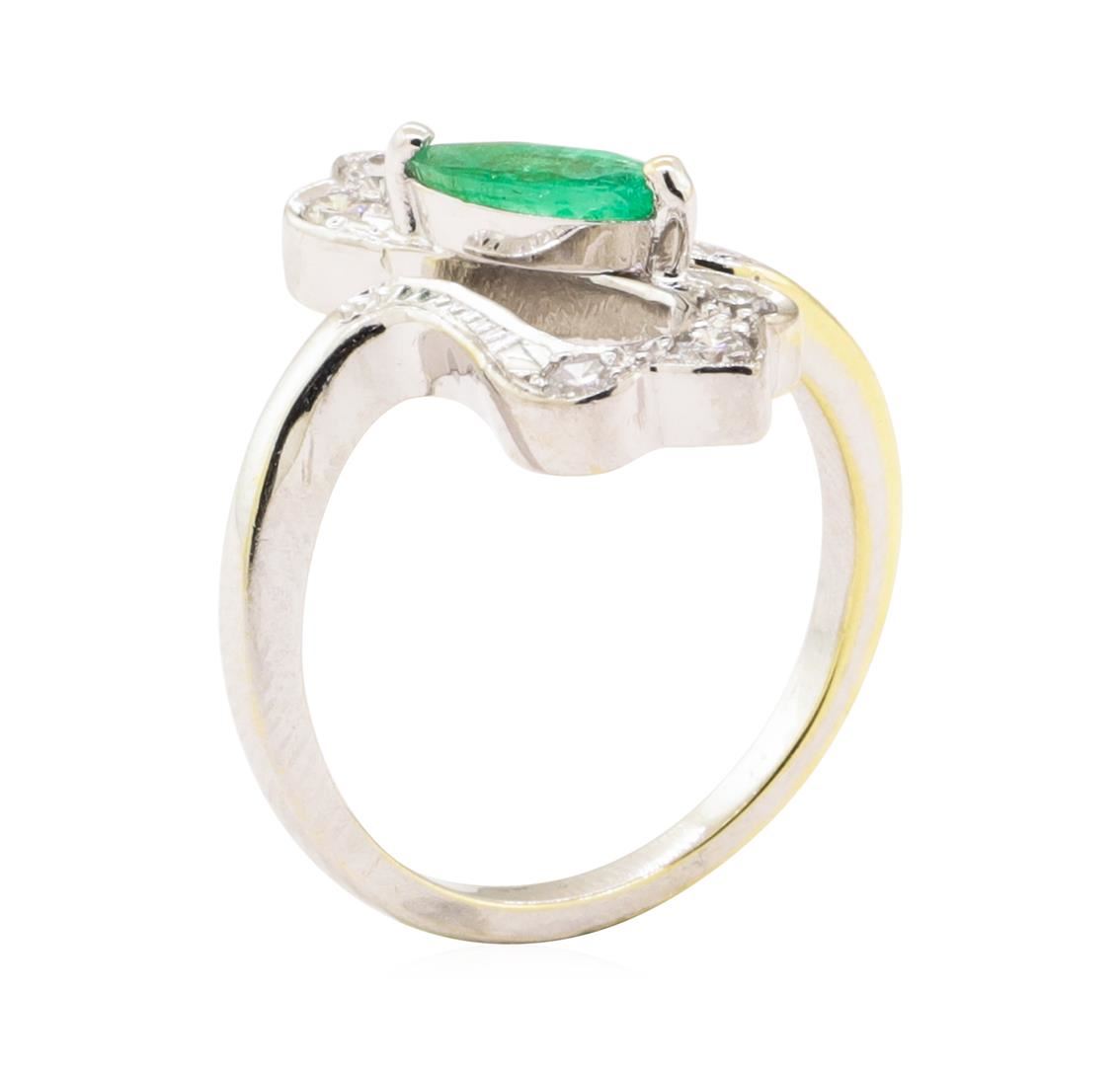 One ring featuring: 18KT white gold weighing 5.4 grams containing one marquise emerald weighing 0.35ct and diamonds weighing 0.25ctw.