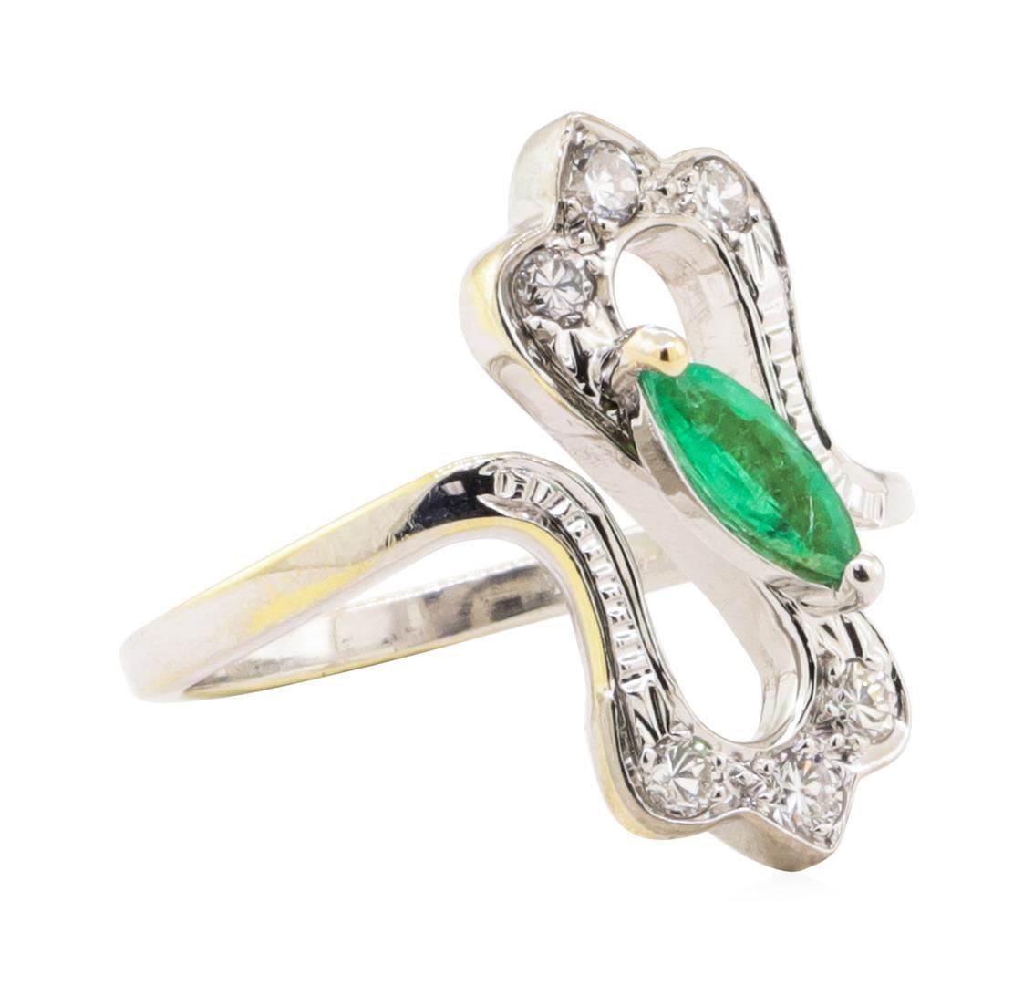One ring featuring: 18KT white gold weighing 5.4 grams containing one marquise emerald weighing 0.35ct and diamonds weighing 0.25ctw.