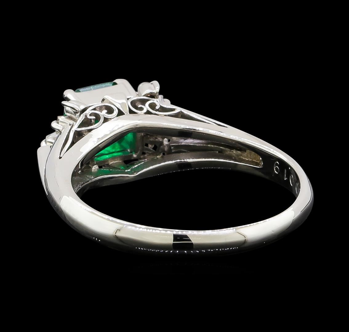 One ring featuring: Platinum containing Emerald with a total weight of 0.60ct and Diamonds with a total weight of 0.19ct. Total Weight of Ring: 5.1 grams.