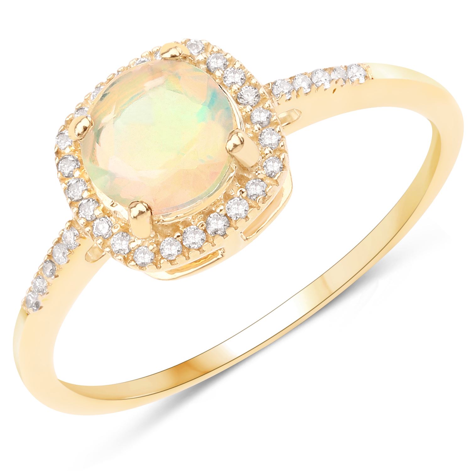 REF-33T2X ---- 0.60 ctw Ethiopian Opal & Diamond Ring 14K Yellow Gold