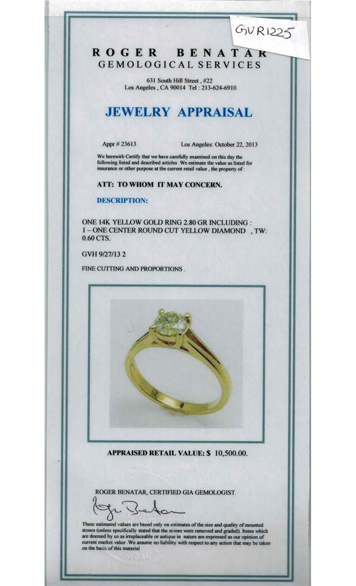 14K YELLOW GOLD NATURAL DIAMOND RING:2.80 GRAMS/DIAMOND:0.60CT/#GVR1225