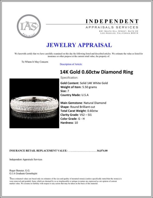Regarding Appraised Jewelry and Loose Stones - Auctionfarm sends them out to a third party for Retail Replacement Value Appraisals, which are the most common. These types of evaluations are written for insurance needs. This would be the cost to replace the jewelry with an item of equal quality and kind, considered to be the current market price or the replacement value. This type of appraisal is done to protect you in the event of damage or loss of a valuable item. Our appraisals are conducted by independent 3rd Party appraisal firms that utilizes Certified GIA Gemologist. Appraisals should be used for verification of gemstone and/or metal weight, size, and grade only, not actual value. Appraisal value should be considered for insurance purposes only, not actual value, as price varies greatly from retail locations thru out the world. Items should not be purchased with the expectation to resell for appraisal price, or for profit.
