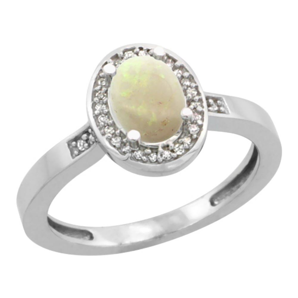 REF-37M5K - SKU: SC-CW420150 ---- 0.61 CTW Opal & Diamond Ring 14K White Gold