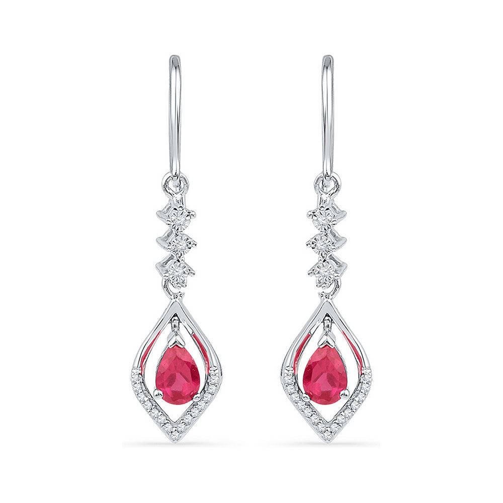 REF-18W2K- SKU: GD100994 ---- 0.61 CTW Pear Created Ruby Diamond Dangle Earrings 10KT White Gold