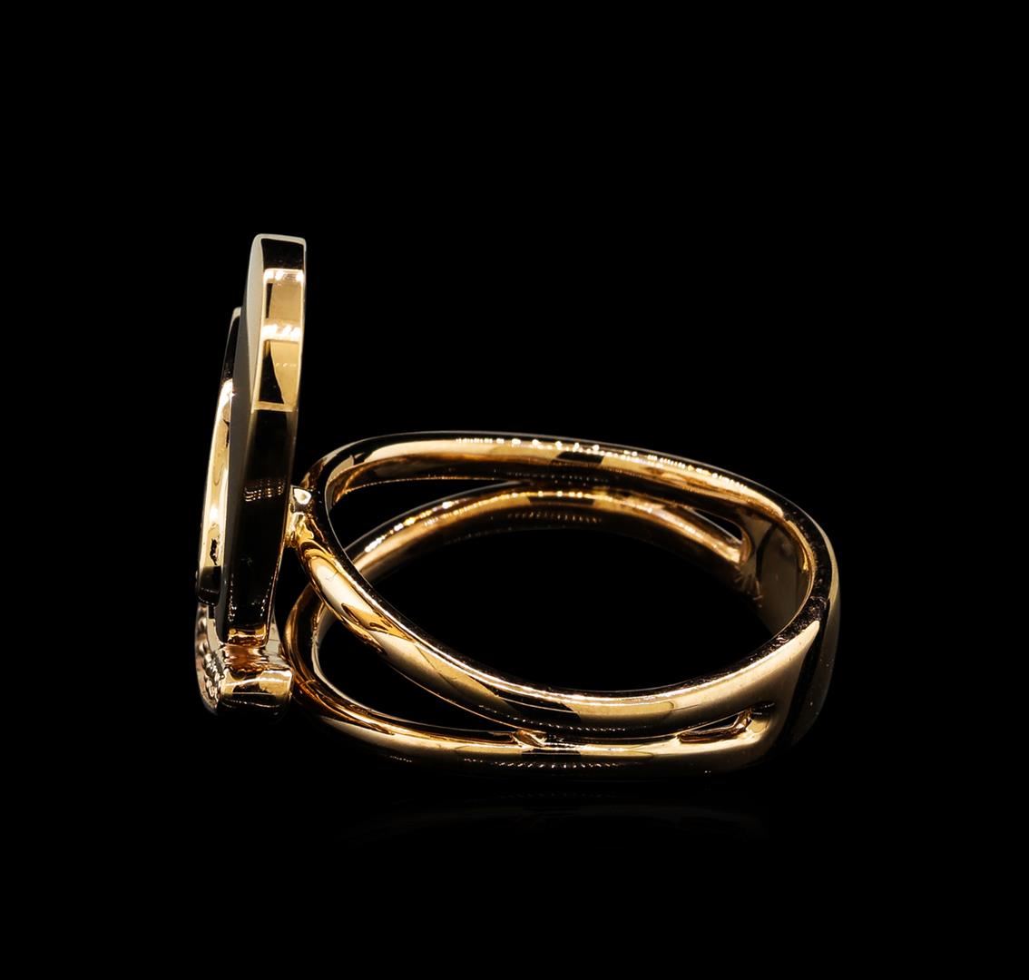 One electronically tested 14KT rose gold lady's combination cast & assembled abstract heart shape ring with a bright polish finish. The featured lady's ring has a shank measuring 5.55 millimeters wide. Identified with markings of 'K14'. Condition is new, good workmanship. Containing: Twenty-Six prong set round brilliant cut diamonds, measuring 1.70 - 1.60 x 1.02mm (depth est.) approximate total weight of 26 Stones = 0.44ct. Graded in the setting. Clarity SI-1 to SI-2. Color: H - I Cut Good Five prong set round brilliant cut diamonds, measuring 1.90 - 1.80 x 1.15mm (depth est.) approximate total weight of 5 Stones = 0.12ct. Graded in the setting. Clarity SI-1 to SI-2. Color: H - I Cut Good Five prong set round brilliant cut diamonds, measuring 1.40 - 1.35 x 0.86mm (depth est.) approximate total weight of 5 Stones = 0.05ct. Graded in the setting. Clarity SI-1 to SI-2. Color: H - I Cut Good. Total Weight of Diamonds 0.61ct.. Total Weight of Ring 7.70gm GAS Appraised at $2,870.00.
