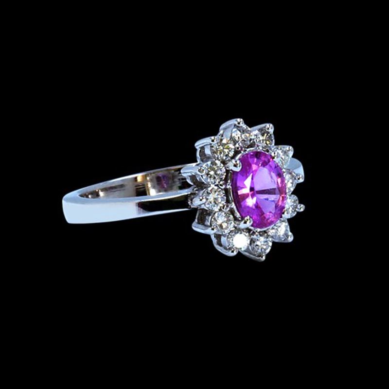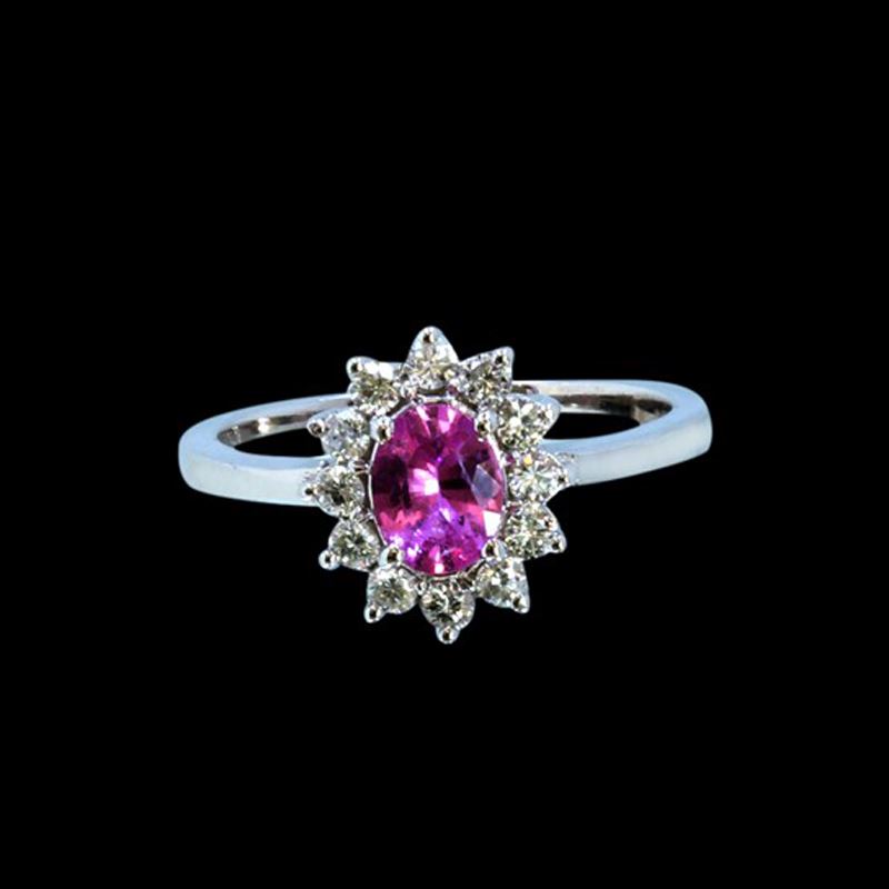 14K WHITE GOLD NATURAL CEYLON PINK SAPPHIRE RING:3.25GRAM /PINK CEYLON SAPPHIRE: 0.61CT/ DIAMOND :0.36CT/#GVR1239
