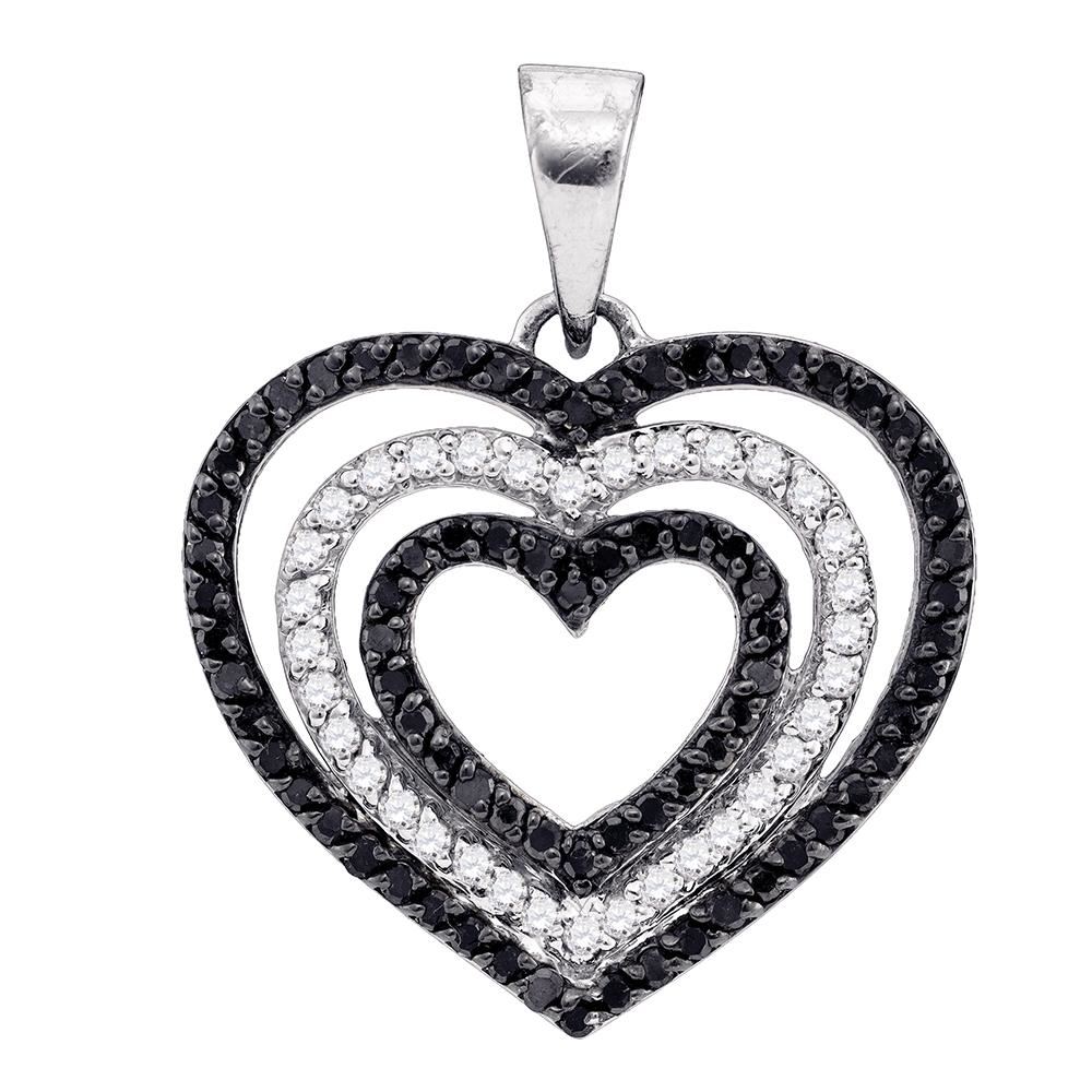 REF-30M2H- SKU: GD76816 ---- 0.62 CTW Black Color Diamond Triple Nested Heart Pendant 10KT White Gold