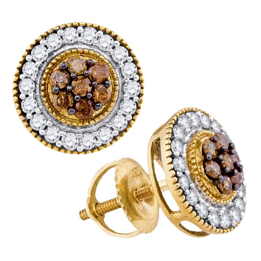 REF-30F2N- SKU: GD90425 ---- 0.62 CTW Cognac-brown Color Diamond Cluster Screwback Earrings 10KT Yellow Gold