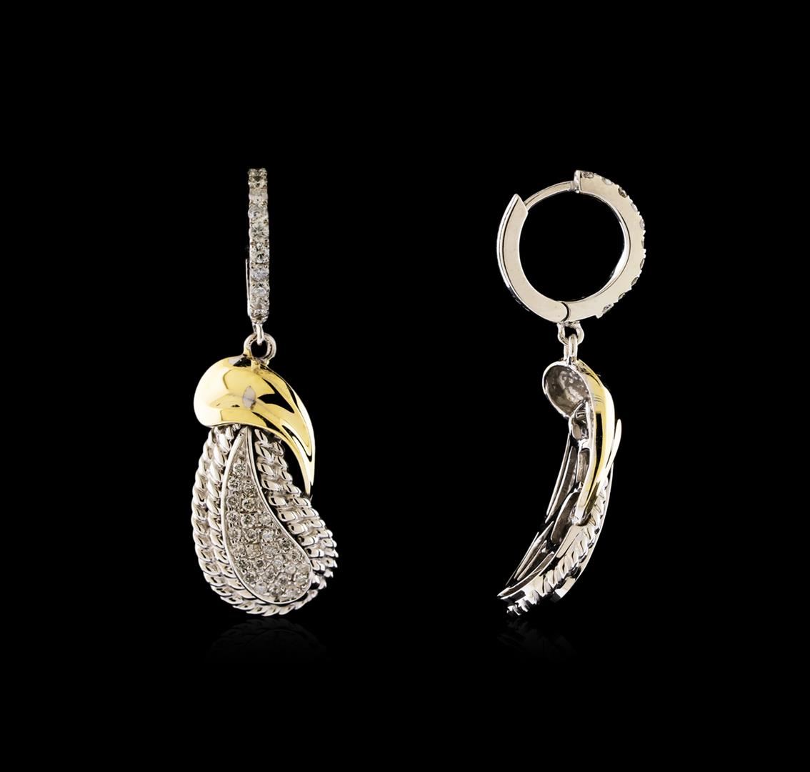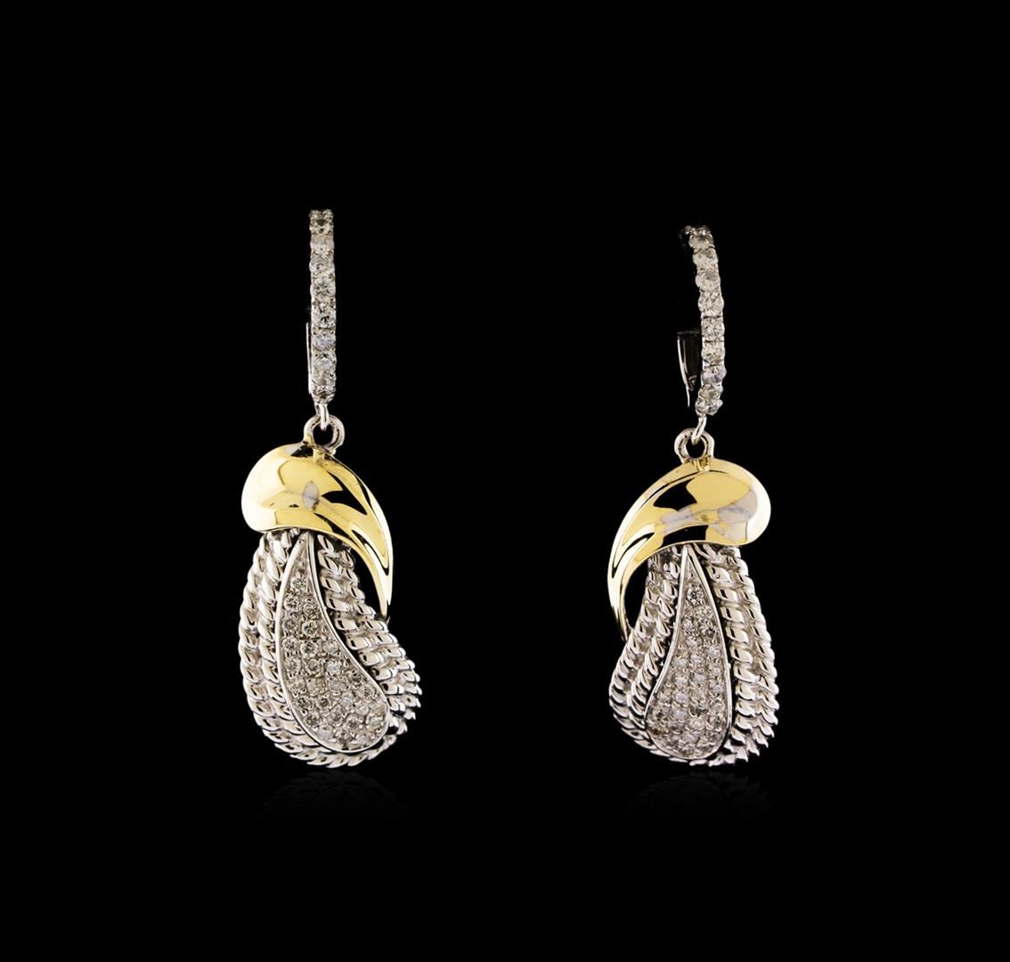 One pair of earrings featuring: 14KT white and yellow gold weighing 6.20 grams containing diamonds with a total weight of 0.62ct.