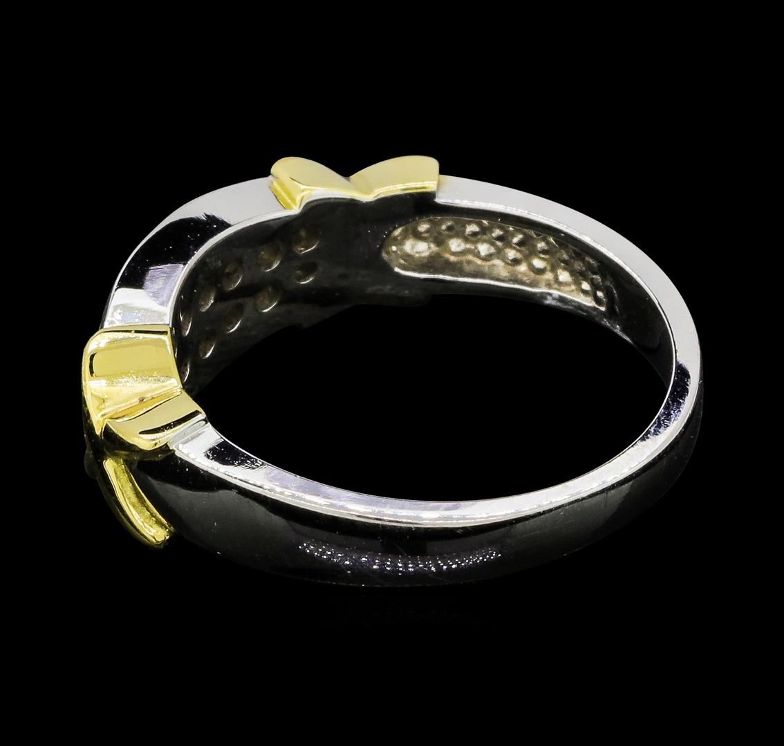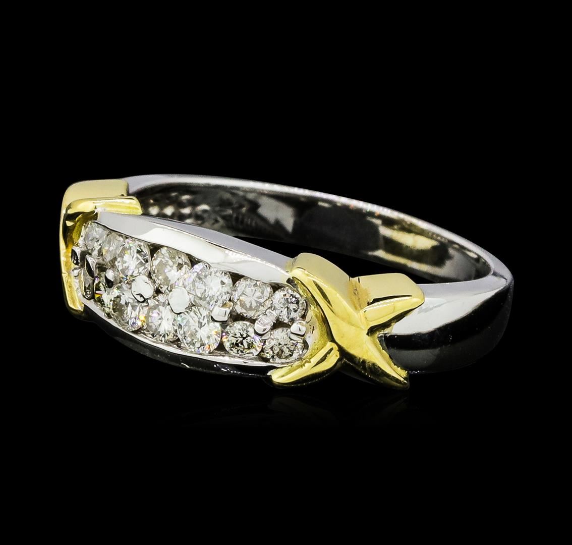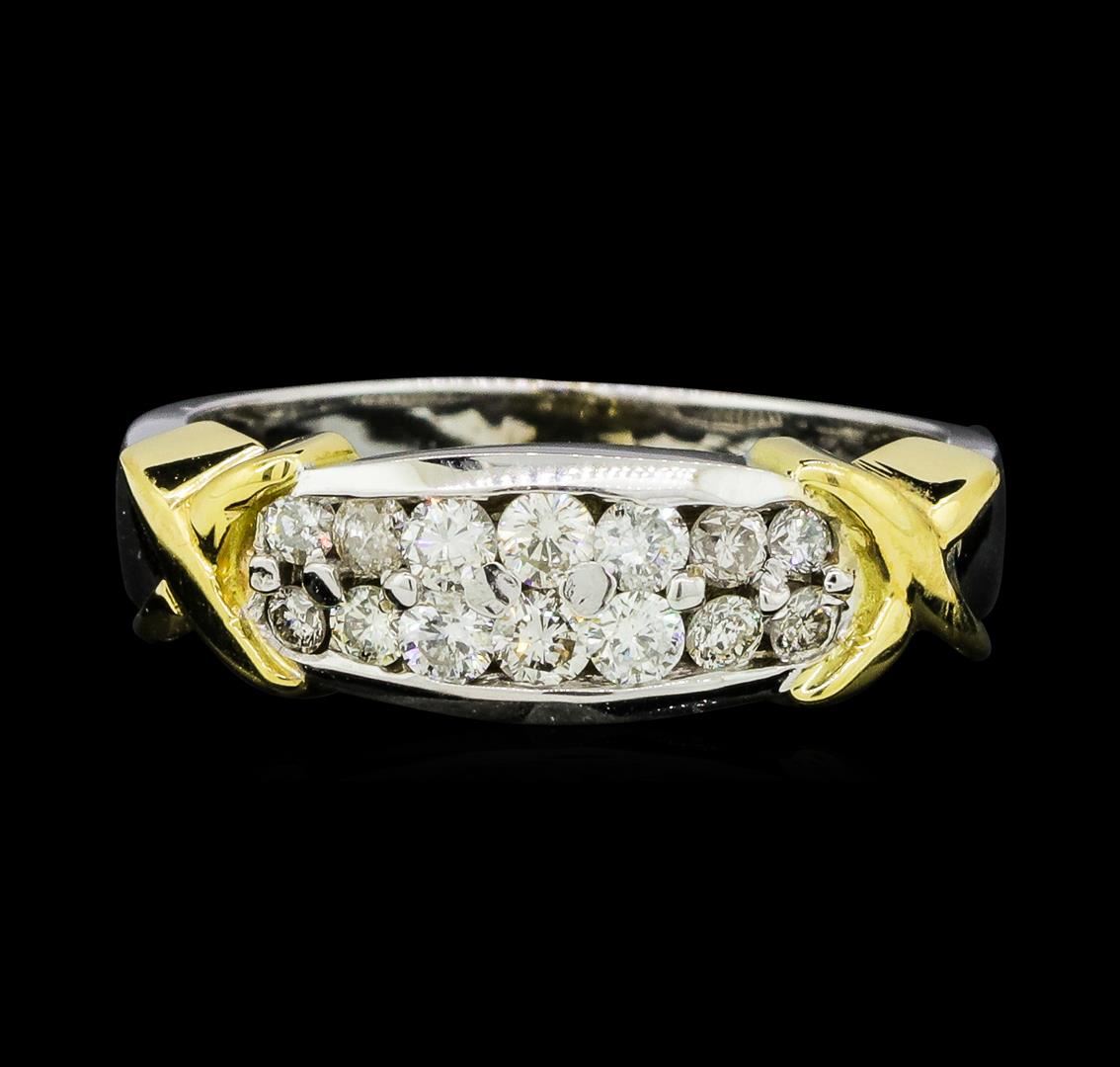 One lady's ring featuring: 14KT white gold with yellow gold plating weighing 5.3 grams containing diamonds weighing 0.62ctw.