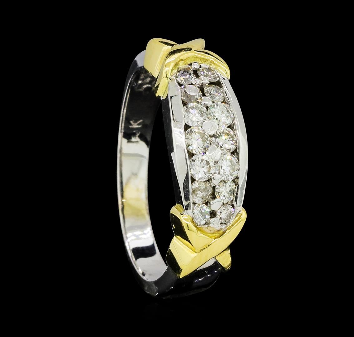 One lady's ring featuring: 14KT white gold with yellow gold plating weighing 5.3 grams containing diamonds weighing 0.62ctw.