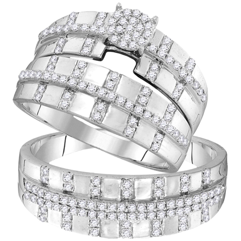 REF-49W5K- SKU: GD104107 ---- 0.63 CTW His & Hers Diamond Cluster Matching Bridal Ring 10KT White Gold