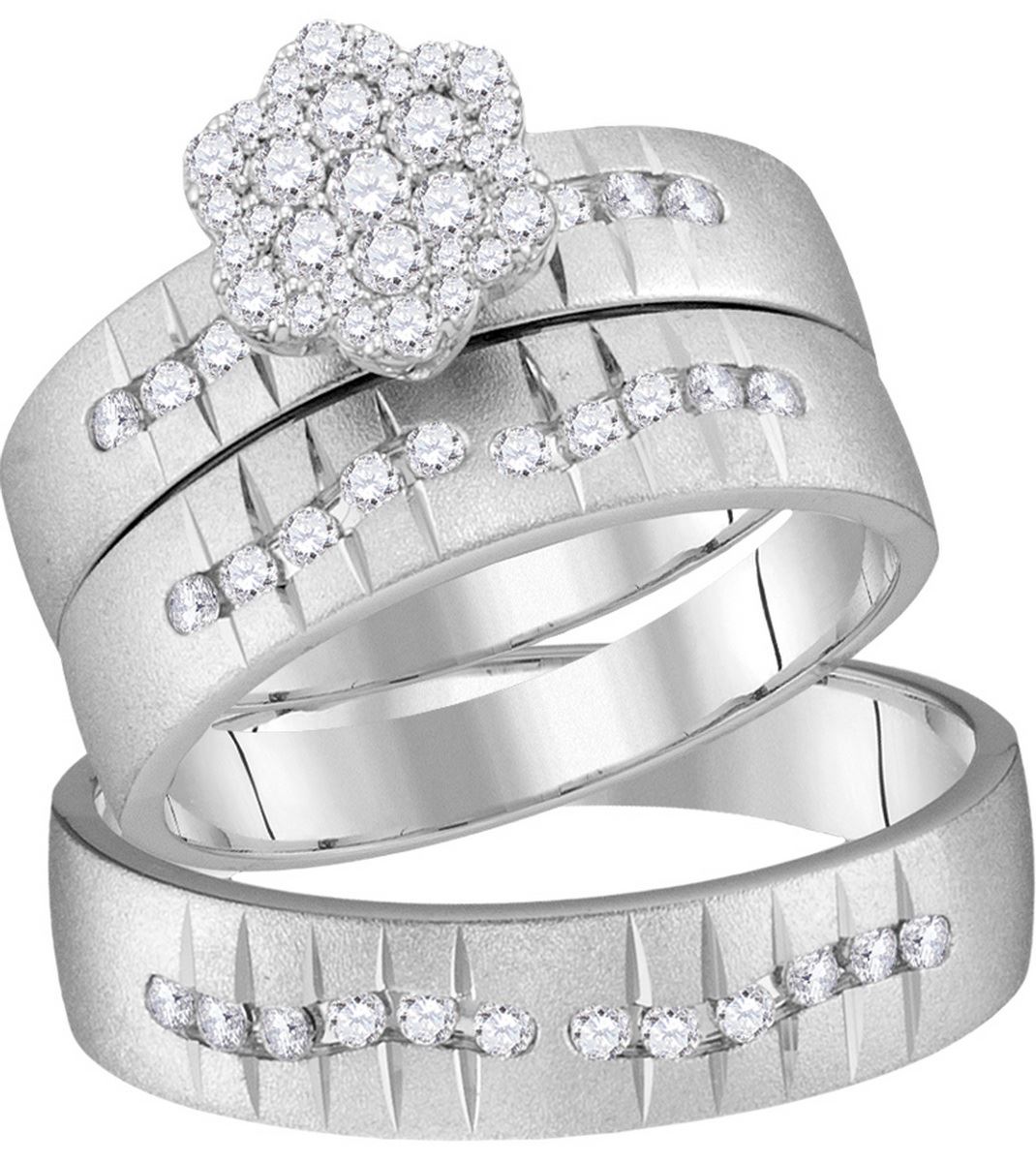 REF-169X8F ---- 0.63 CTW His & Hers Natural Diamond Cluster Matching Bridal Ring 14K White Gold - SKU: GD113921