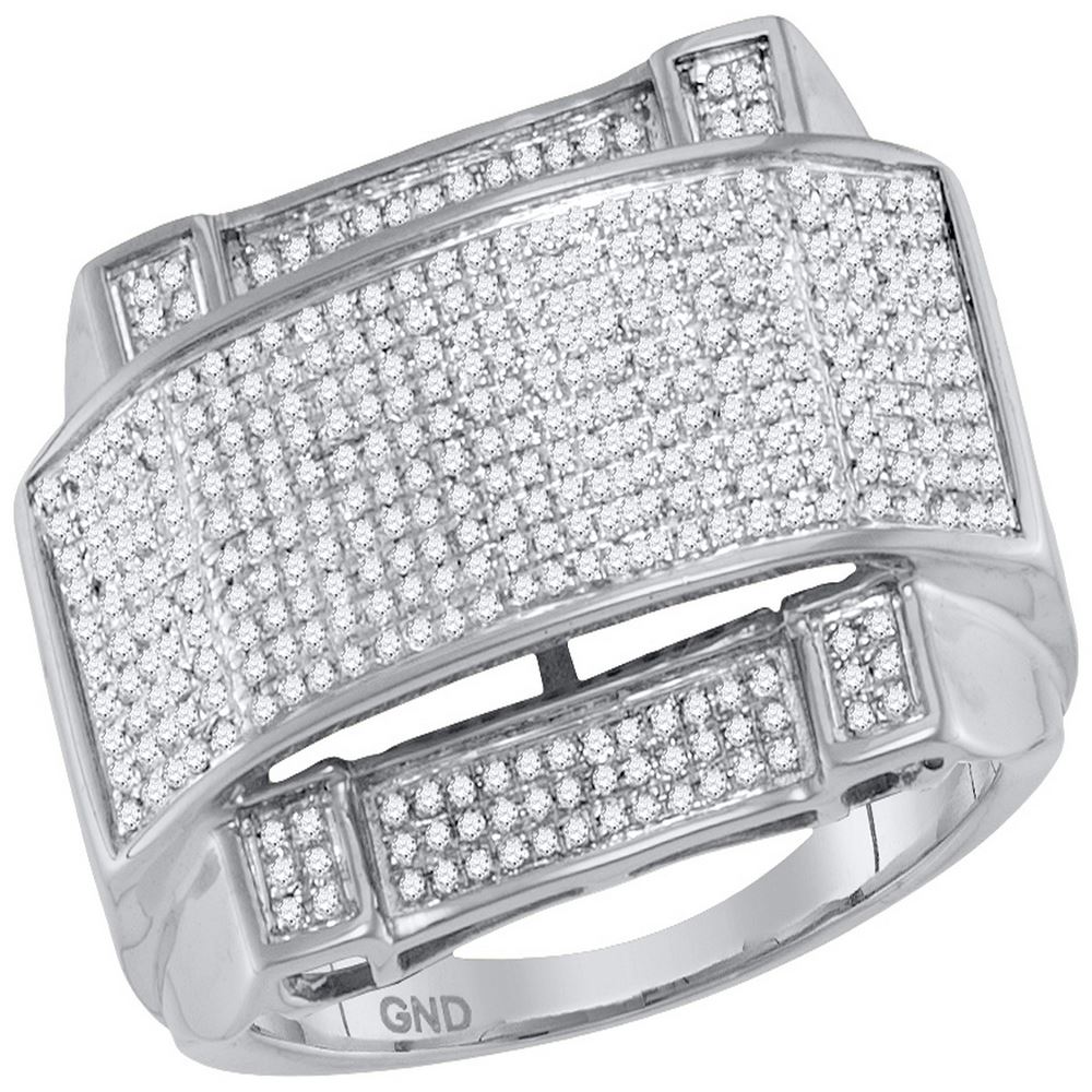 REF-79X4Y- SKU: GD76501 ---- 0.63 CTW Mens Diamond Arched Rectangle Cluster Ring 10KT White Gold