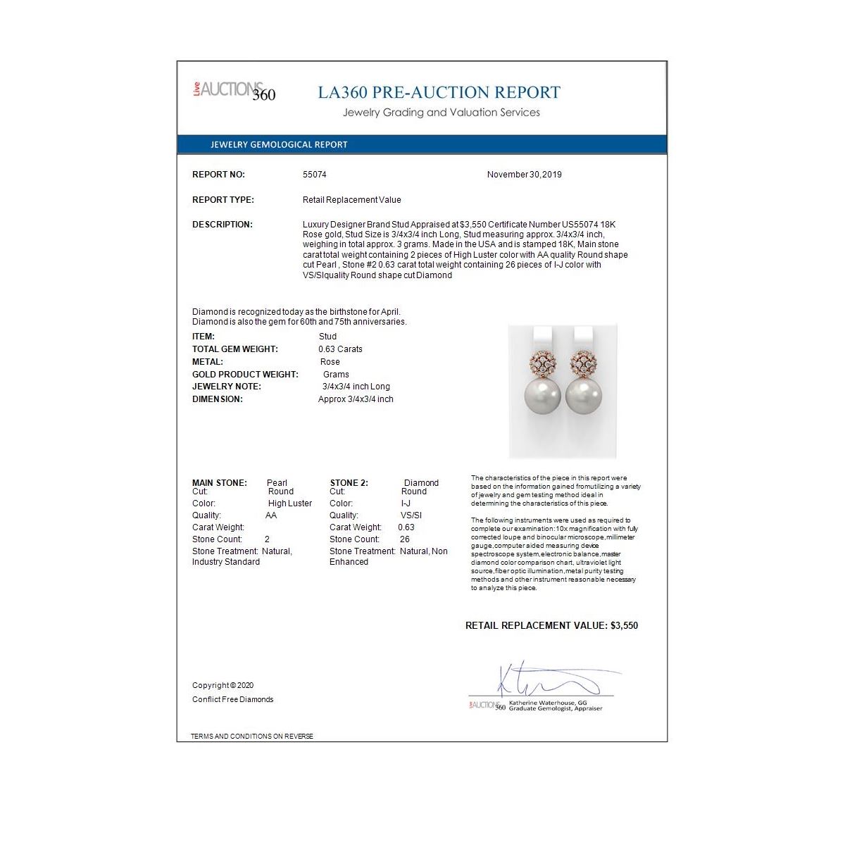 All sales are final, placing a bid is a legally binding obligation. All lots are sold as is, where is, with all the faults, imperfections, omissions and errors in the written description, estimates, appraisals, graphics and photography. USJL is not responsible for any errors or omissions in the description, graphics or photography provided or in the bidding software. Due diligence to verify the condition and description of a lot is the sole responsibility of the Bidder prior to placing any bid. Returns may only be made with the advance written authorization of USJL and are in USJL's sole discretion to approve. To request a return you must provide a written request fully explaining the basis for the return no later than 4 days after your receipt of the lot. Under no circumstances will any amounts other than the winning bid amount be refunded. A restocking charge of 19% of the full invoice amount may apply in USJL 's sole discretion. Any allowed returns must be received in exactly the same condition as when originally shipped to Buyer, or they will be returned to buyer at Buyer's cost. Any unauthorized returns will be refused. DELIVERY REFUSAL OF ITEMS SHIPPED BY US JEWELRY LIQUIDATION TO THE BIDDER CONSTITUTES AN UNAUTHORIZED RETURN IN DIRECT VIOLATION OF THESE GENERAL TERMS AND CONDITIONS.