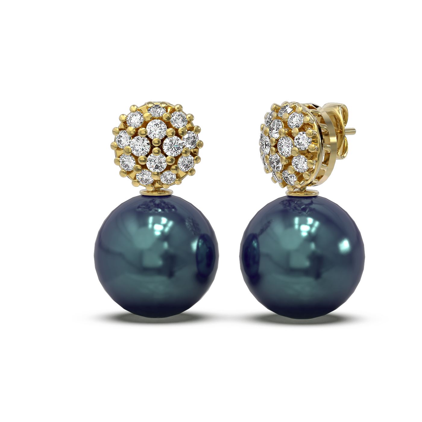 REF-71R6K - SKU: 55072 ---- 0.63 ctw Diamond & Pearl Earrings 18K Yellow Gold