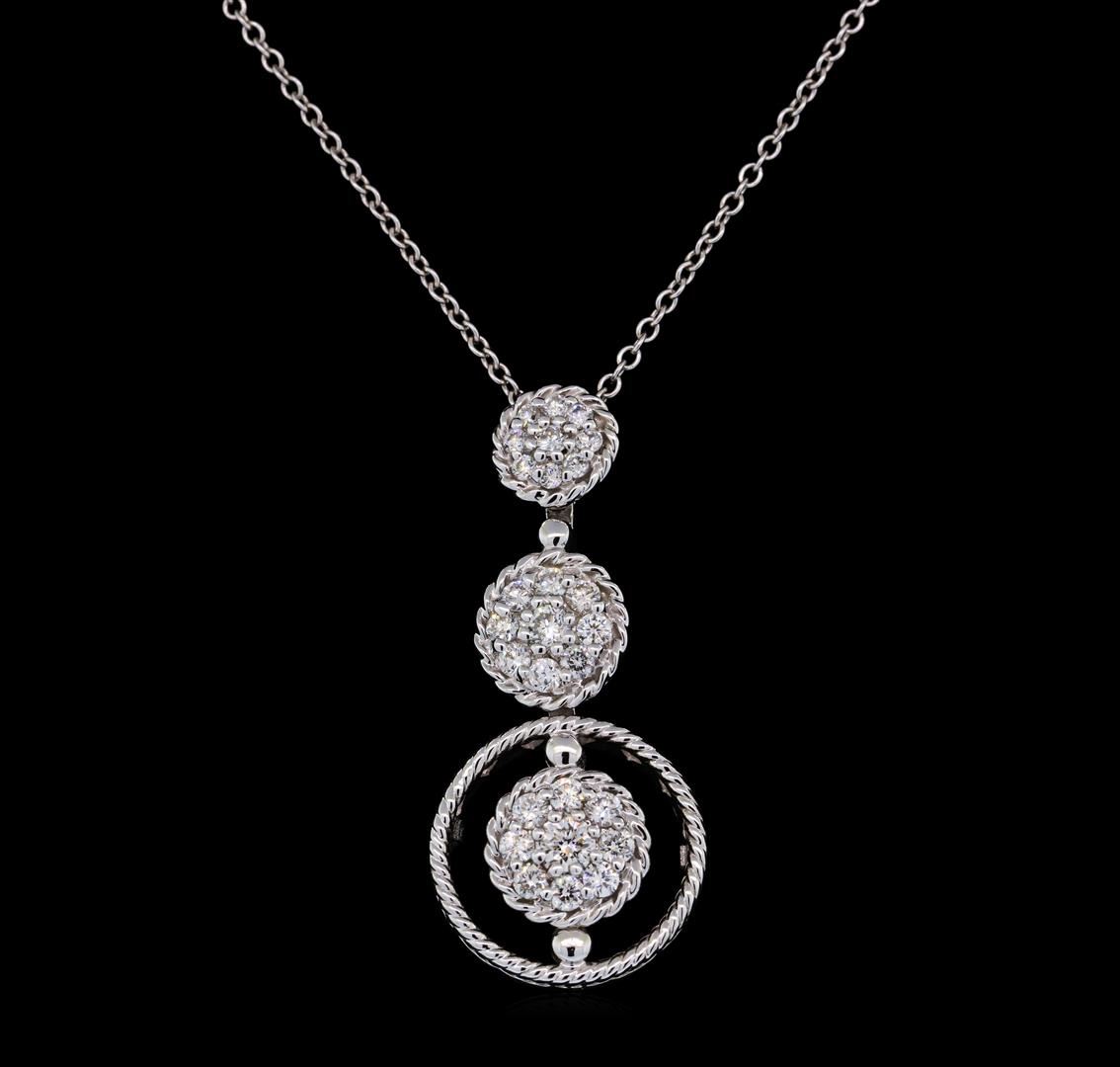 One lady's diamond pendant with chain featuring: 14KT white gold weighing 5.2 grams containing diamonds weighing 0.63ctw