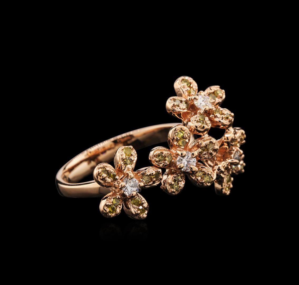 One ring featuring: 14KT rose gold weighing 6.43 grams containing white and yellow 44 diamonds with a total weight of 0.63ct.