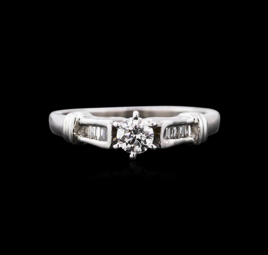 One ring featuring: platinum weighing 3.50 grams containing one diamond center stone with a total weight of 0.25ct and eight baguette cut diamonds with a total weight of 0.38ct.