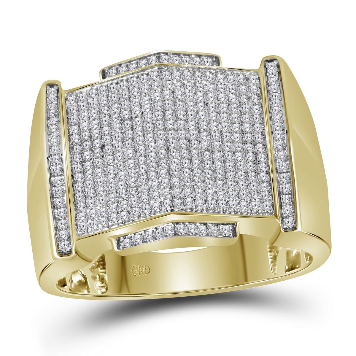 REF-89H9M- SKU: GD116266 ---- 0.64 CTW Mens Diamond Pointed Symmetrical Cluster Ring 10KT Yellow Gold