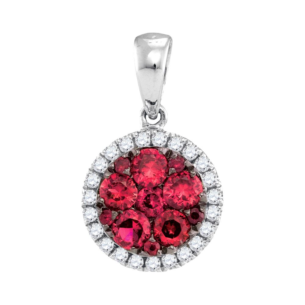 REF-52W4K- SKU: GD94725 ---- 0.64 CTW Ruby Cluster Diamond Circle Pendant 14KT White Gold