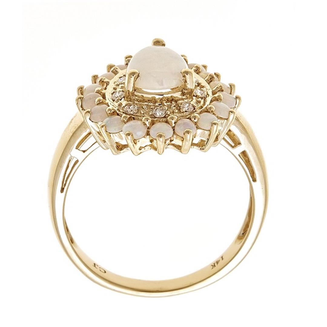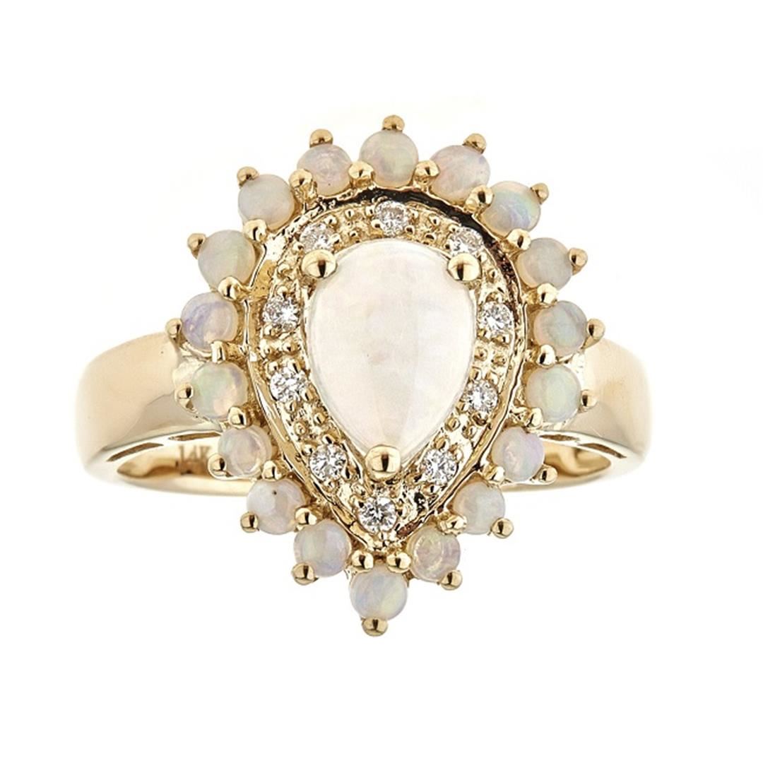 One Australian Opal and Diamond Ring featuring: 14KT Yellow Gold with a total weight of 4.06 grams, Australian Opal with a total weight of 1.02ct, 18 Australian Opal Stones with a total weight of 0.45ctw. and 10 Diamonds with a total weight of 0.09ctw.