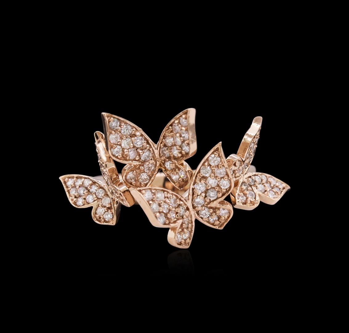 One ring featuring: 14KT rose gold weighing 6.11 grams containing diamonds with a total weight of 0.64ct.