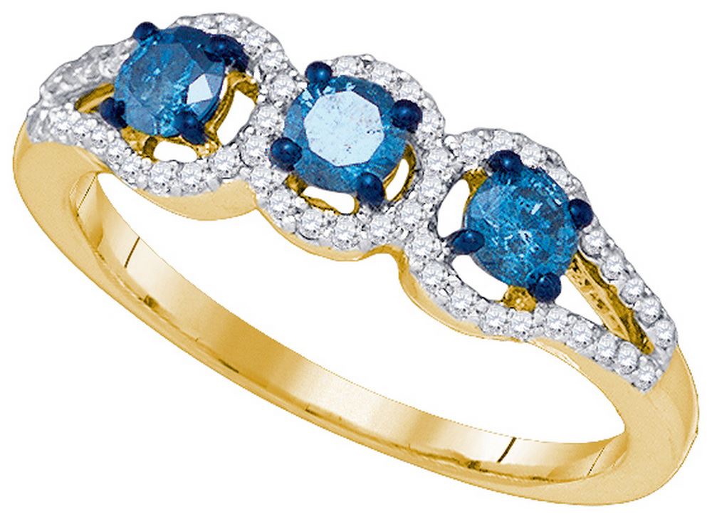 REF-50K2W ---- 0.65 CTW Blue Colored Diamond 3-stone Bridal Engagement Ring 10K Yellow Gold - SKU: GD80162