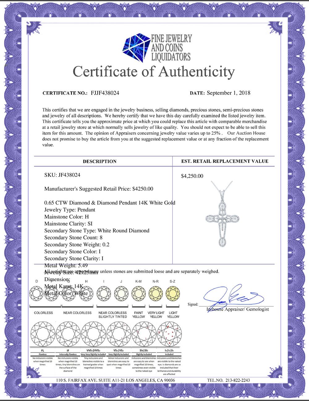 REF-56R6K - JF438024 ---- 0.65 CTW White Round Diamond Pendant 14K White Gold
