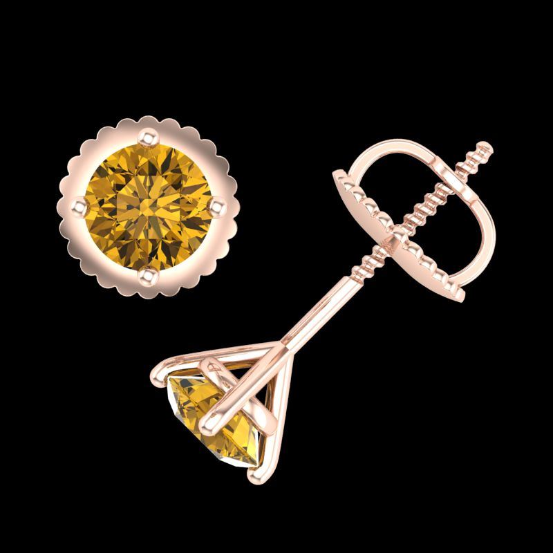 REF-81A8X -38226 ---- 0.65 CTW Intense Fancy Yellow Diamond Art Deco Stud Earrings 18K Rose Gold ---- Luxury Designer Brand Earring Appraised at $4,950 Certificate Number US38226 18k Rose gold, Earring Size is Larger, Earring measuring approx. Uniform, weighing in total approx. 2 grams. Made in the USA and is stamped 18k, Main stone 0.65 carat total weight containing 2 pieces of Intense Fancy Yellow color with SI quality Round shape cut Diamond , Stone #2 carat total weight containing pieces of color with quality shape cut