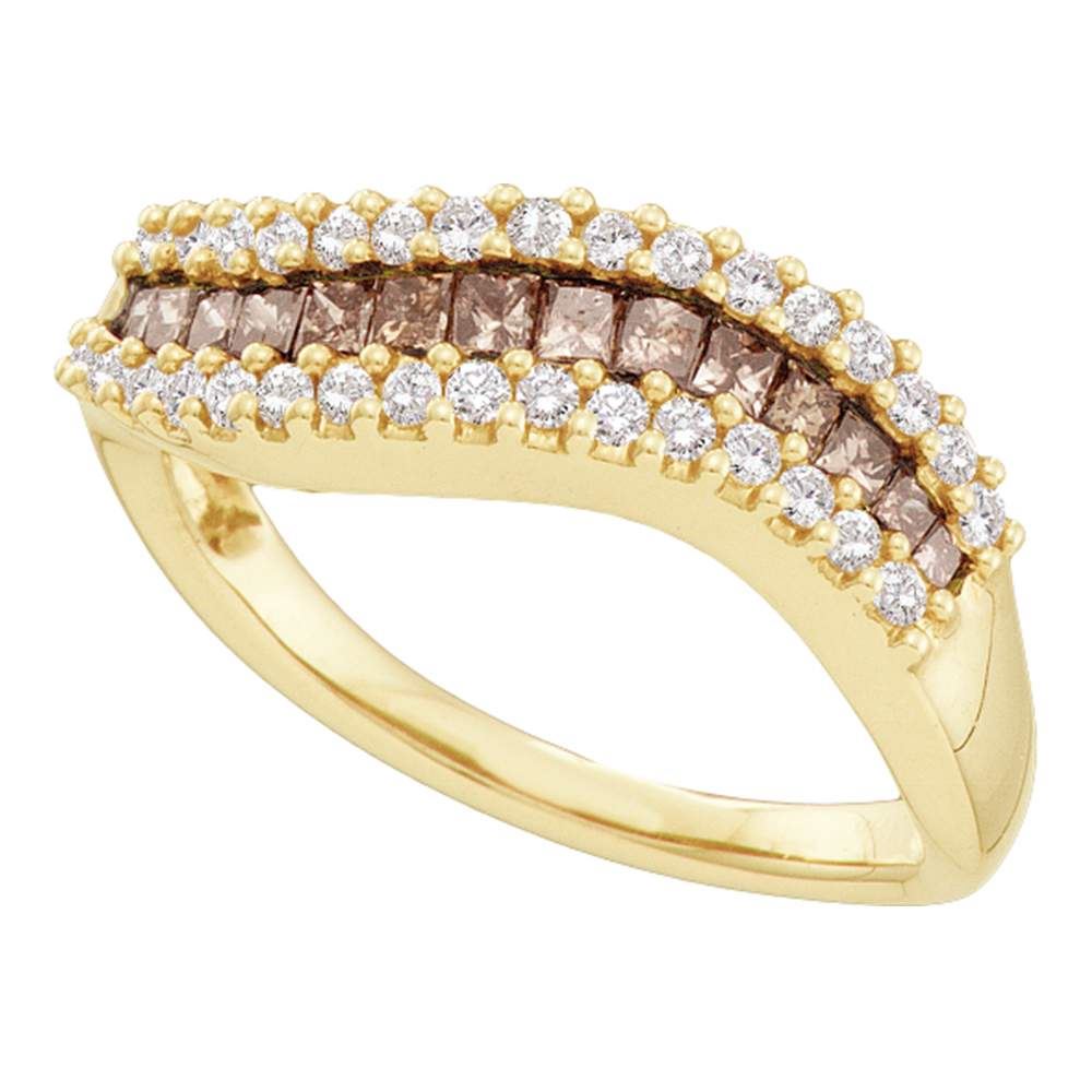 REF-59M9H- SKU: GD47214 ---- 0.65 CTW Princess Cognac-brown Color Diamond Ring 14KT Yellow Gold