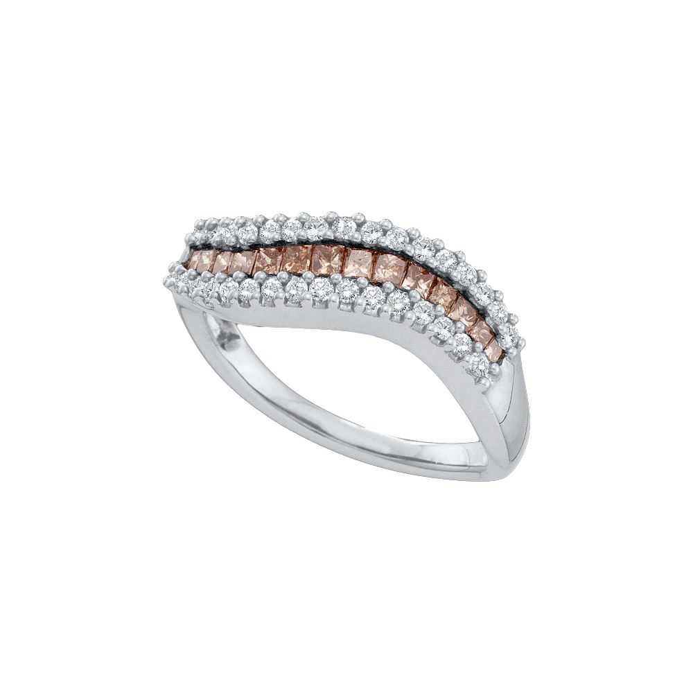 REF-79N9Y ---- 0.65 CTW Princess Cognac-brown Colored Diamond Curved Band 14K White Gold - SKU: GD47215