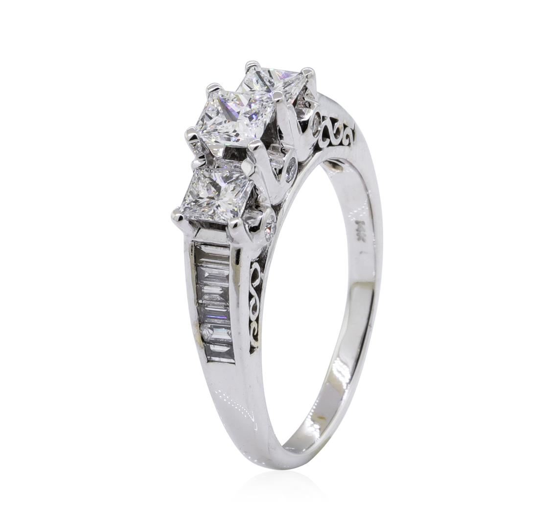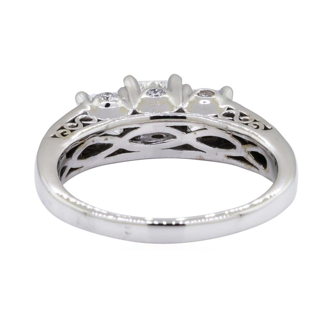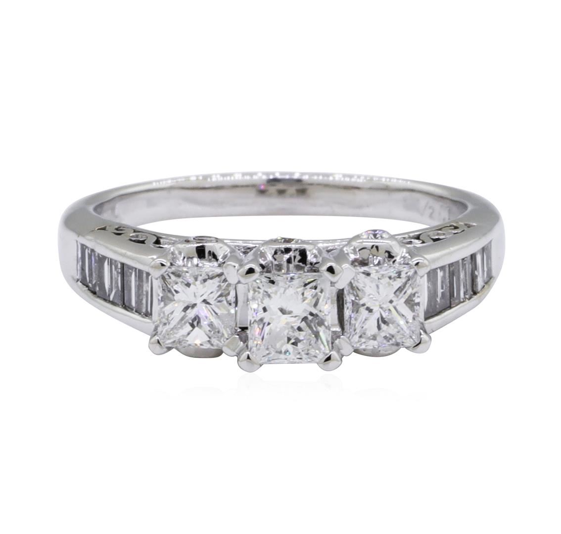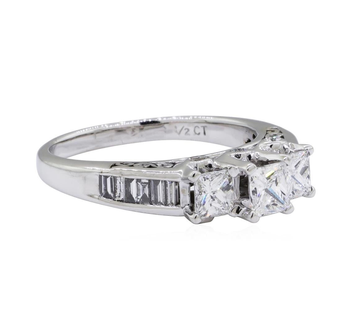 One electronically tested platinum lady's combination cast & assembled wedding ring with a straight line with a bright polish finish. This featured lady's ring has a shank measuring 2.6 millimeters in width. Identified with markings of 'PLAT'. Condition is new, good workmanship. Containing: Seven prong set round brilliant cut diamonds, measuring 3.01 - 2.80 x 1.80mm (depth est.) approximate total weight of 7 Stones = 0.65ct. Graded in the setting. Color F - G Clarity VS-2 to SI-1 Cut Good. Total Weight of Diamonds 0.65ct.. Total Weight of Ring 5.10gm GAS Appraised at $2640.00. GAS Appraised.