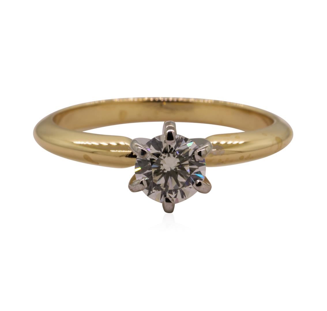 One lady's ring featuring: 14KT yellow gold weighing 2.9 grams containing one round brilliant diamond weighing 0.65ct.