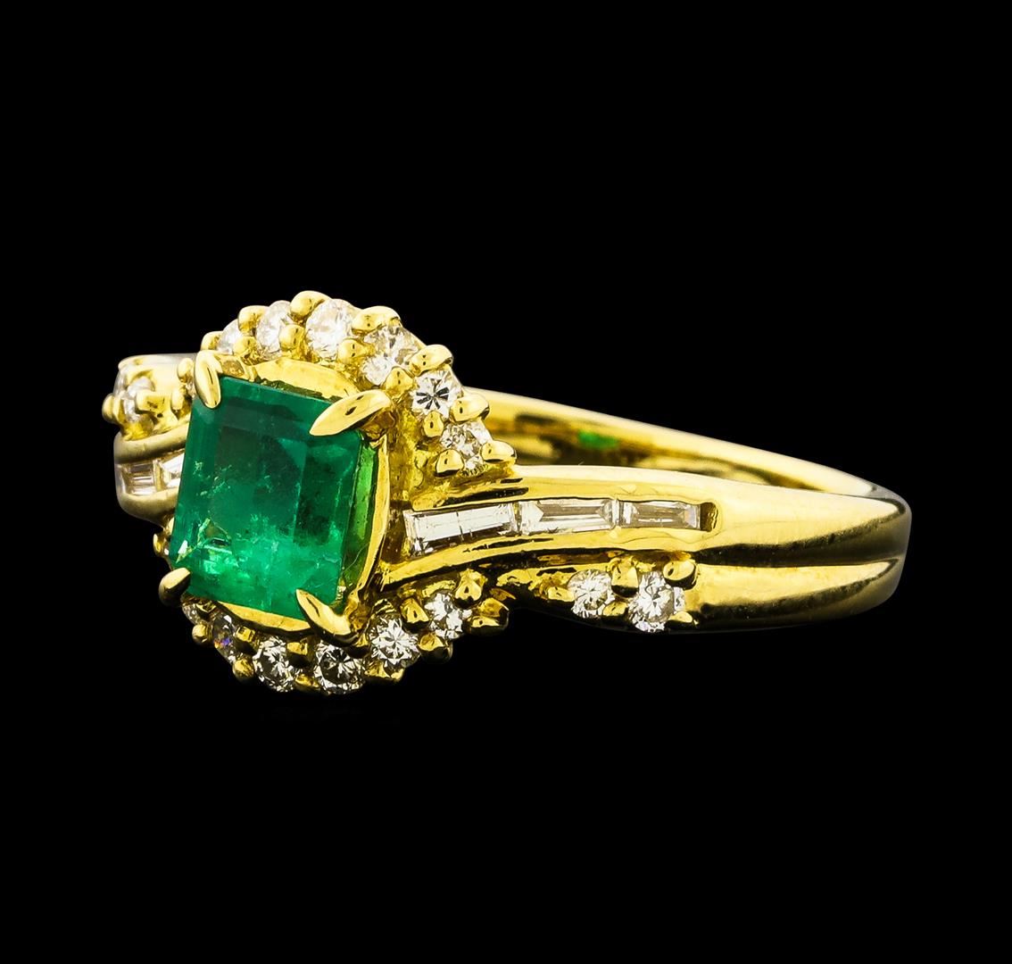 One ring featuring: 18KT Yellow Gold containing Emerald with a total weight of 0.65ct and Diamonds with a total weight of 0.33ct. Total Weight of Ring: 4.4 grams.